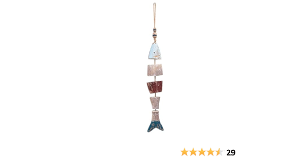 Amazon Com Luckybamboo Hanging Vintage Wooden Fish Wall Art Fishbone Fish Netting For Decoration Rustic Nautical Fish Decor For Beach Theme Small 21 7 Home Kitchen